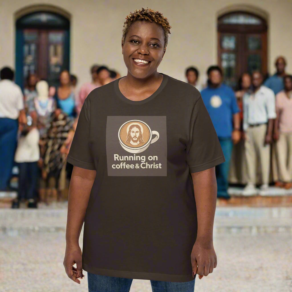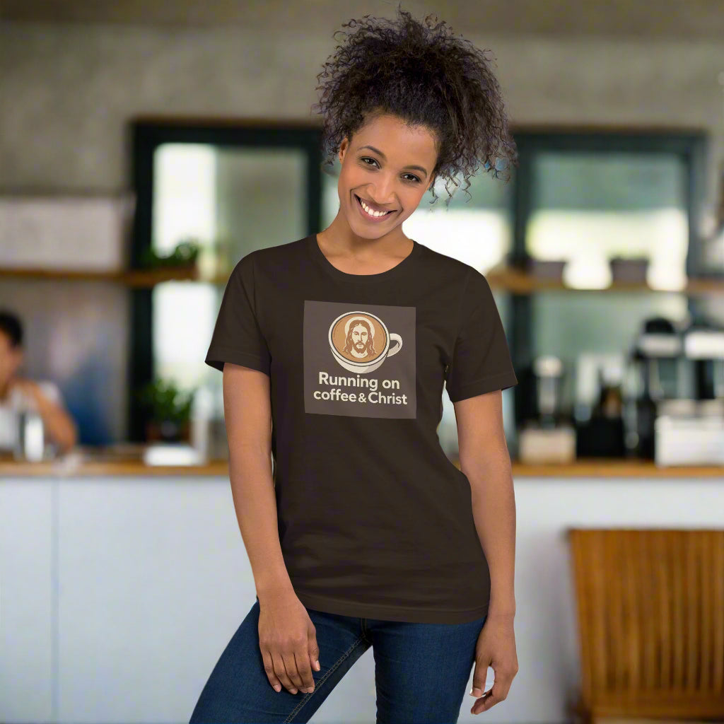 This t-shirt sums up how many of us feel...especially in the early morning! This Coffee & Christ tee is soft and lightweight, with the right amount of stretch. It's comfortable and flattering for all, and will definitely get a chuckle or two while waiting in line for your cup of joe.